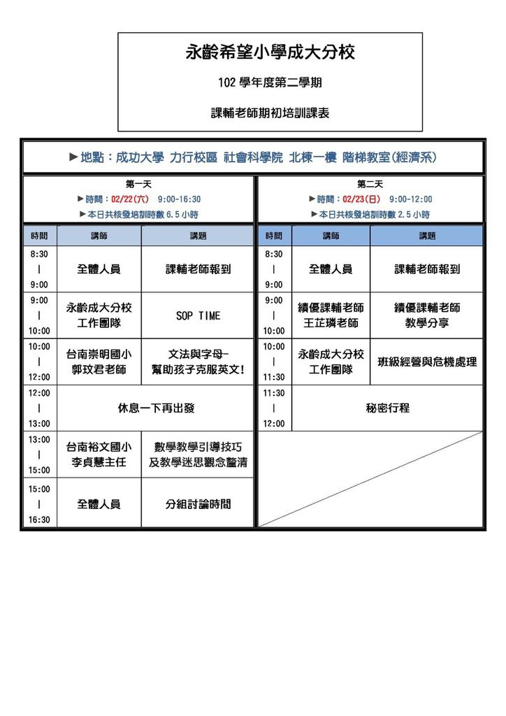 當天培訓時數9小時,另外補影帶課輔老師培訓時數僅有7小時