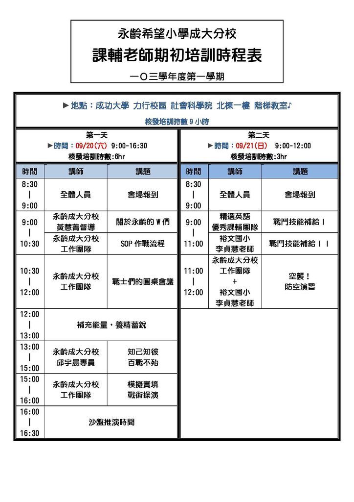 若這兩天有事不能前來記得請假喔~之後也是要補培訓心得的